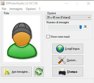In base al Paese di riferimento, il programma mostra in automatico qual è la dimensione giusta che l’immagine deve avere per essere valida. Gli altri bottoni servono per impostare la lingua, gestire le opzioni e stampare l’immagine.